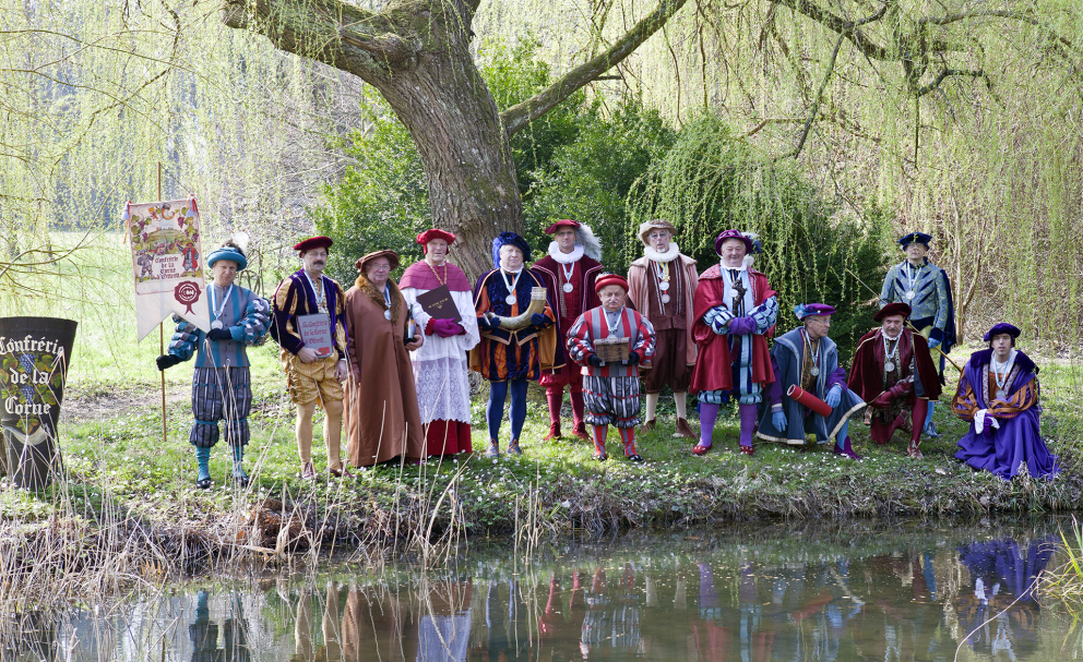 The Guild was created on May 27, 1586 at the Haut-Barr Castle by the Bishop of Strasbourg, Jean de Manderscheidt, to reinforce friendships and to avoid wars. The symbol is an auroch’s horn containing 4 pints of red Ottrott wine. Any future sworn-in knights were forced to empty the horn.